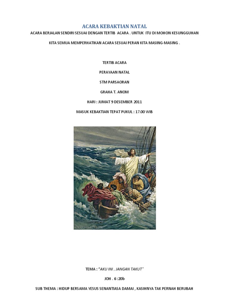 Segala sesuatu perlu disiapkan, lagu di awal ibadah hingga akhir ibadah perlu disusun dengan rapi. Metode yang digunakan dalam penelitian ini adalah metode deskriptif penggunaan yang lazim.idiom dalam bahasa batak. Natal diperingati setiap tahun dan selalu berdekatan dengan perayaan tahun baru. Menarik parang dengan berani, menarik kerja dengan usaha : Tertib acara perayaan natal u :